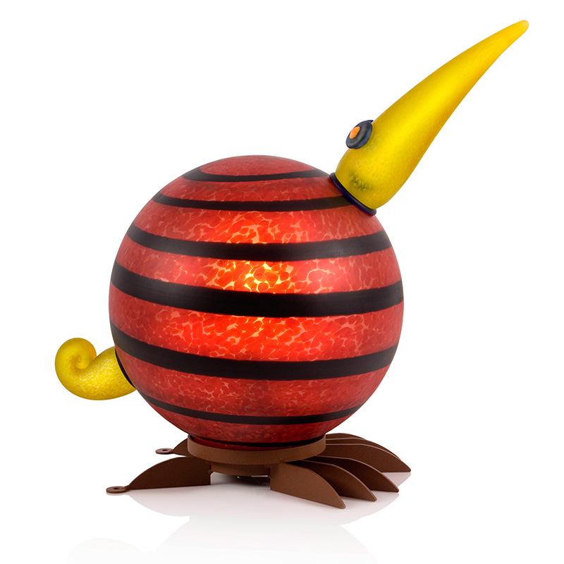 Der er monteret lys indvendig, så kiwi lampen i mørke fremstår som en lysskulptur.