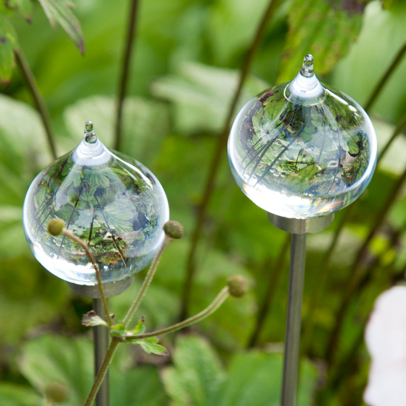 Glashyttans DUGDRÅBE er en lille håndlavet, krystalklar glasskulptur. Den er monteret på et rustfrit spyd på 95 cm, så den kan placeres, hvor den enkelte synes, den passer bedst.
